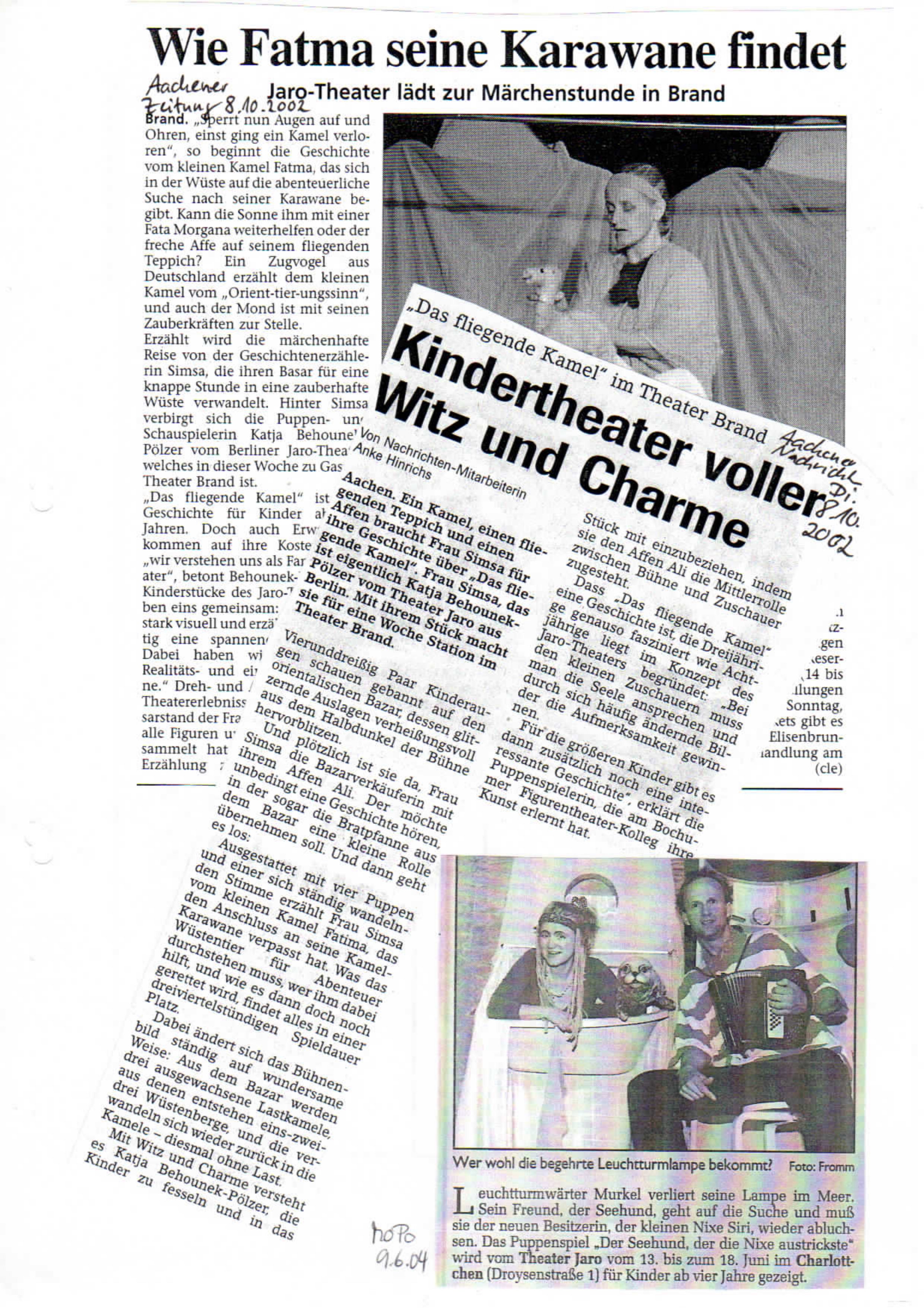 "Ich glaube, was meine Arbeit vor allem ausmacht, ist Fragen zu stellen. Ich suche immer einen gemeinsamen Weg, Geschichten sinnlich und humorvoll zu erzählen. Was ich besonders beim Theater JARO schätze, ist die gemeinsame Suche, die Poesie in den Stücken, getragen von der wunderbaren Musik von Martin und Leon. Die Kombination von Puppen- und Schauspiel eröffnet ganz andere und wunderbare Möglichkeiten des Geschichtenerzählens."